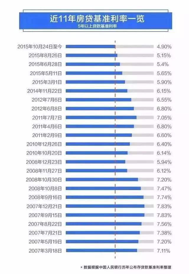 而从近10年房贷利率走势来看,由上图可以看出,目前基准4.9%,依然属于近10年以来的较低水平。